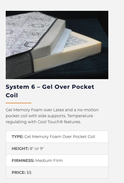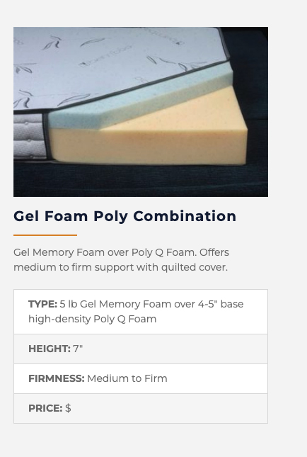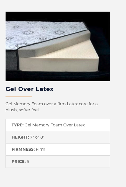 Our Gel Memory Foam comfort layer offers a unique blend of memory foam infused with gel beads that rapidly channel heat away from the body, resulting in a more uniform temperature in both cool and warm environments. Gel Memory Foam combined with our Latex or pocket coil base layer offers qualities similar to what you would see in brand name mattresses, with premium comfort layers and plush, smooth fabrics.