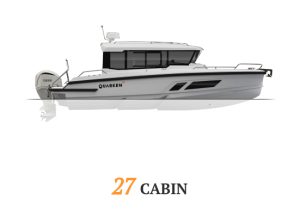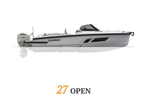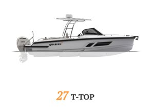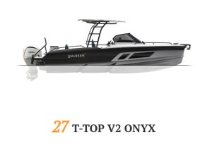 At the heart of Quarken’s lineup is the 27-foot range, which has established itself as the brand’s flagship fleet. This range includes several variants of the Quarken 27 tailored to different boating styles: the Open version for open-air cruising, the T-Top with a sturdy roof for sun and weather protection, the T-Top V2 Onyx with premium styling and added onboard amenities, and the Cabin version designed for all-weather versatility and comfortable overnight stays. Each model shares a twin-stepped hull, efficient Yamaha outboard power, and modular deck layouts that deliver confident handling, stability, and fuel efficiency across a variety of conditions.