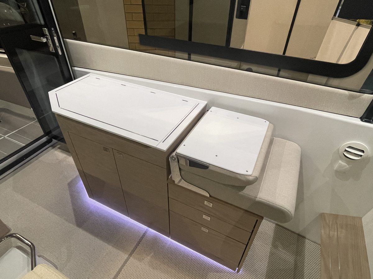 By opening the big glass rear window and door, you can combine the cabin and aft deck into one huge social space. The side terraces in the aft increases the mingling area for your family and guests.