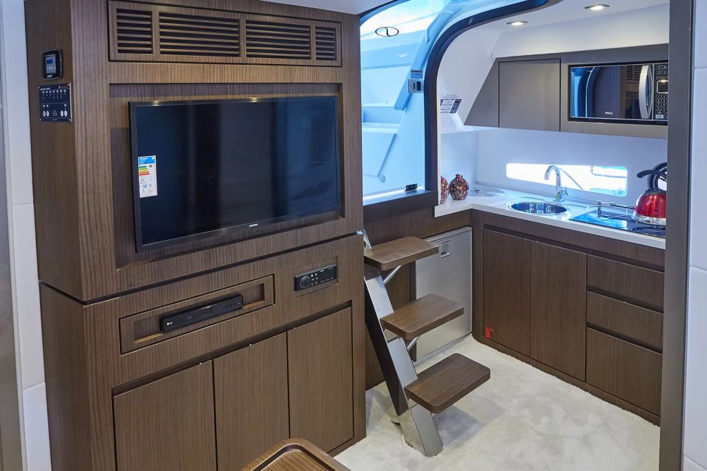 Below deck, the interior feels spacious and well‑appointed, with high ceilings, a fully equipped galley, comfortable salon, and thoughtful amenities that elevate onboard living. Overall, the Schaefer 400 offers a luxurious yet practical boating experience, ideal for owners seeking an expressive cruiser that performs as impressively on the water as it does in style.