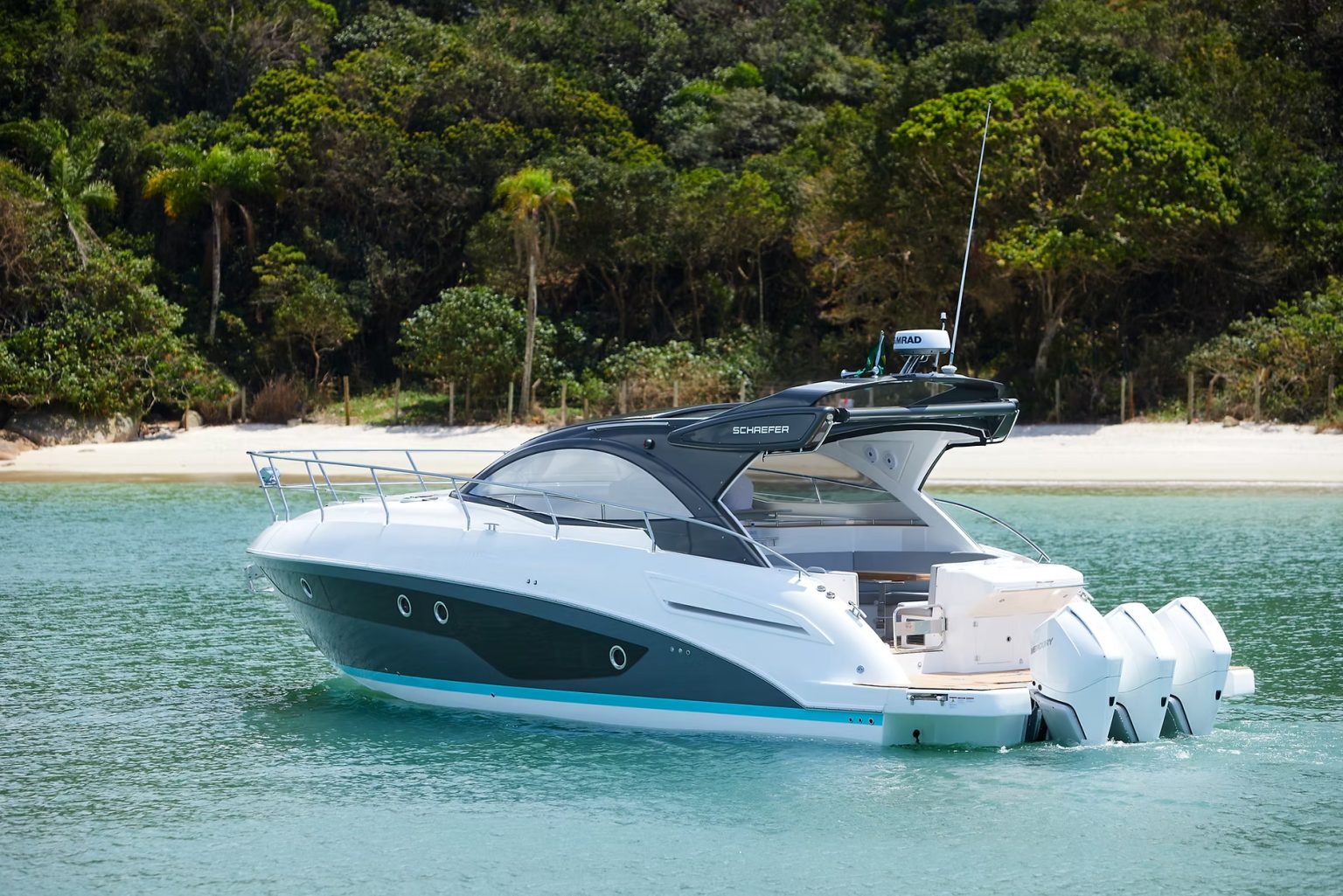 The Schaefer 400 is a 40‑foot express cruiser from Brazilian builder Schaefer Yachts that expertly merges luxury, performance, and livability in a versatile pleasure craft. Designed by Marcio Schaefer, it stands out with bold exterior lines, a refined hardtop, and an open main deck that flows seamlessly from the helm to the generous aft cockpit, creating a social space perfect for entertaining or family outings.