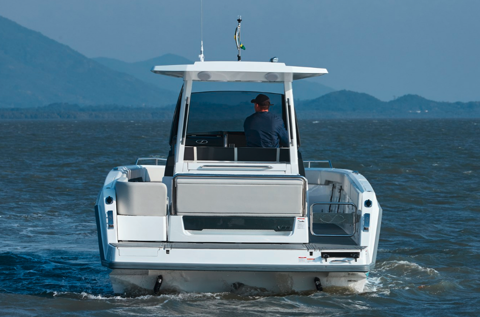 The Schaefer V33 is a 33.9-foot walk-around cruiser from Brazilian yacht builder Schaefer Yachts that blends sporty, modern styling with versatile, family-friendly functionality.